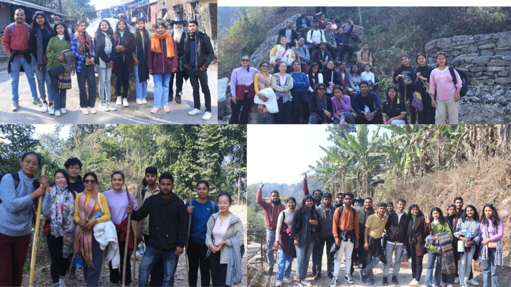 This year, Bikalpa went hiking from Vijaypur to Danabari on January 27, 2024. Danabari is a locality in Dharan, Sunsari, ” located at an elevation of 1,010 meters” for outdoor enthusiasts and nature lovers. It is also one of the “local tourist destinations.” Visitors can follow several walking paths and trails, allowing them to explore the park and its surroundings. In addition to its natural beauty, Danabari is a popular destination for recreational activities.