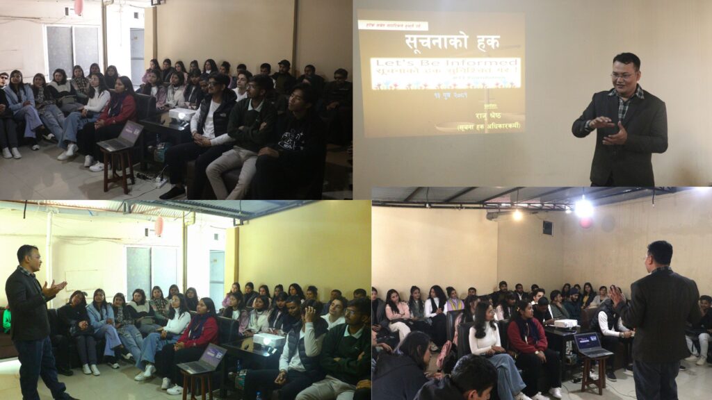 In his presentation, Mr. Shrestha explained the legal provision that grants citizens the right to access information held by public authorities. He highlighted that Nepal’s Interim Constitution of 2007 gave RTI rights, and Article 27 has allocated this fundamental right. He shared examples related to RTI and showcased a video associated with the topic. Participants also raised further queries about the subject and had a lively discussion.