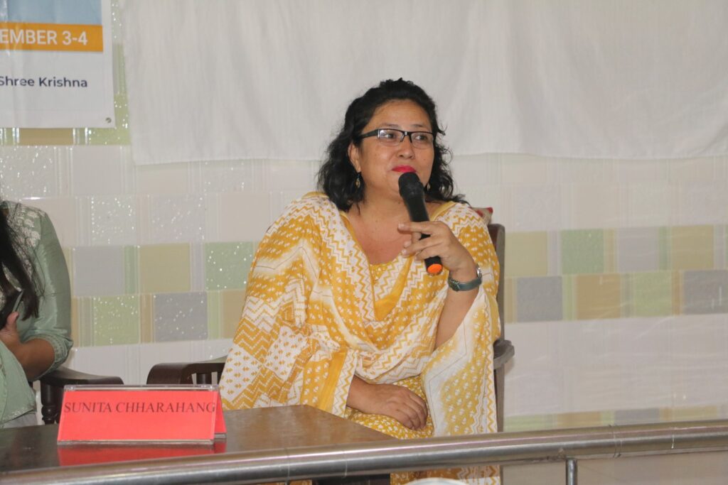 Ms. Sunita Chharahang, shared an inspiring journey of transformation from lockdown adversity to entrepreneurial success. Her engaging narrative sheds light on the transformative power of resilience and creativity. She commenced her insightful presentation by recounting how the lockdown period unexpectedly became a turning point in her life, propelling her toward entrepreneurship. She revealed that her enduring passion for arts and crafts was the foundation for her entrepreneurial venture. She emphasized her long-standing practice of restoring and repurposing waste materials, a habit that eventually led to the creation of unique handicraft products. She also shared female entrepreneurs’ challenges, citing familial obligations and the lack of economic freedom as significant barriers. She also talked about women entrepreneurs’ dilemma, highlighting the dual responsibility of managing households while running a business. Ms. chharahang underscored the inherent challenge of balancing these roles, reflecting on how societal norms often inhibit women from fully realizing their entrepreneurial potential.