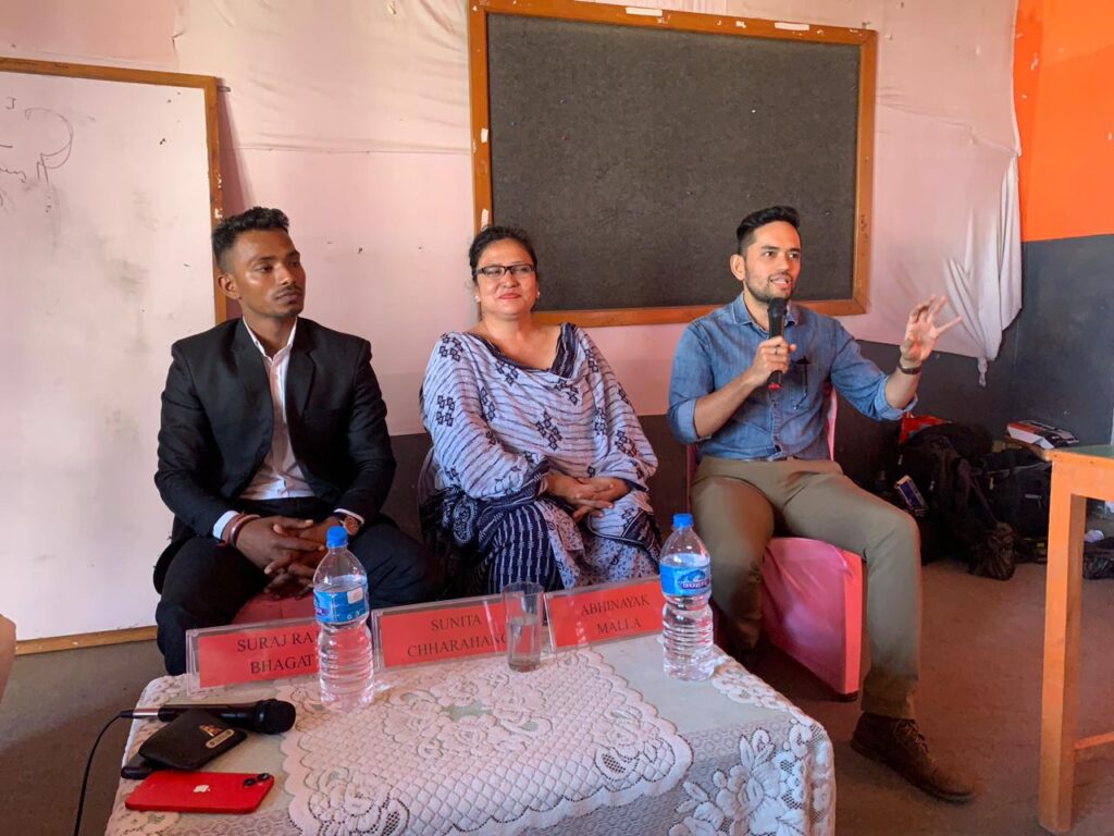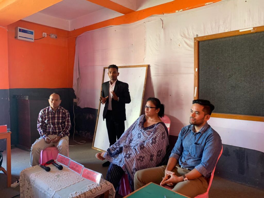 Three entrepreneurs from Biratnagar were invited as panelists for the panel discussion session on entrepreneurship. The 2-hour session was divided into a closed session, where the panelist were provided 12 minutes each for sharing about their entrepreneurial journey, and explain about their business, constraints, challenges and opportunities encountered during their journey as an entrepreneur. The second session was an open session where the participants were allowed to ask questions to the panelists. The panelist included Mr Suraj Raj Bhagat, (Founder & CEO of Bhagat Suppliers and Kabadi.com). Another panelist was Ms. Sunita Chharahang, President of Federation of Nepalese Cottage and Small Industries, Morang Chapter and proprietor of Maya Ko Chino, a handicraft manufacturing company and Mr. Abhinayak Malla (Founder Wakecup Coffee, Biratnagar)