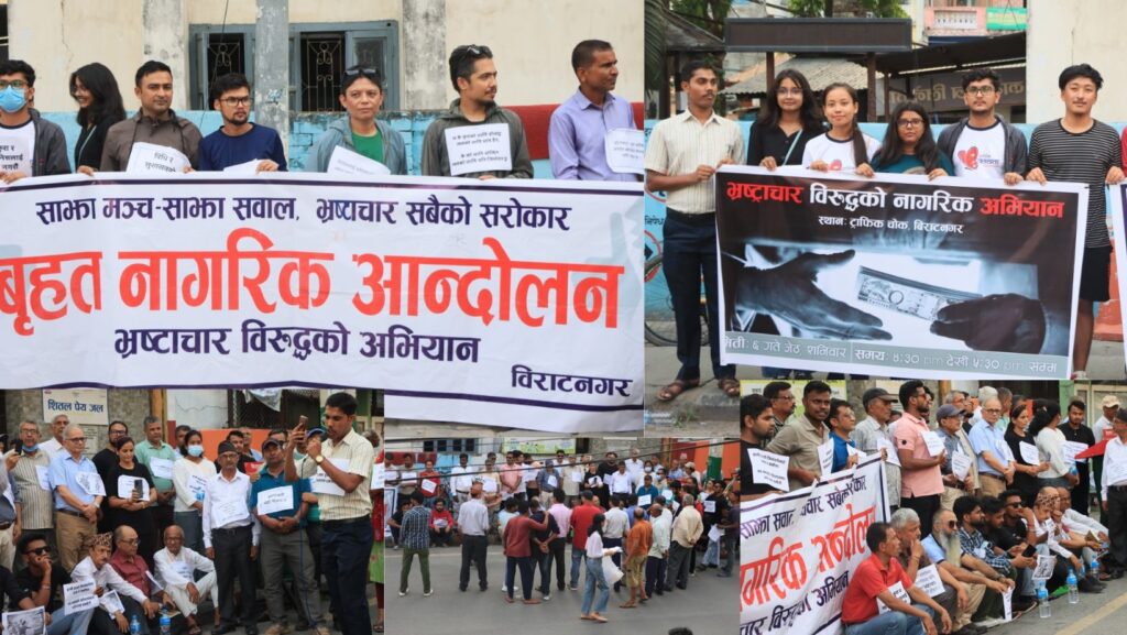 On May 20, 2023, Bikalpa an Alternative, in collaboration with the Biratnagar civil society movement, organized an Anti-corruption demonstration campaign at Traffic Chowk. The event aimed to pressure the government, urging them not to spare
