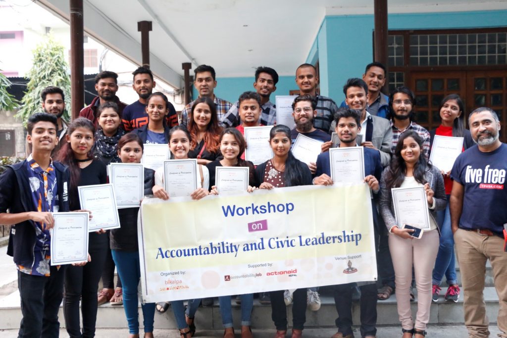 Bikalpa – an Alternative conducted the 21th “Workshop on Accountability and Civic Leadership” in collaboration with Accountability Lab & Action Aid Nepal, targeting the college students in Biratnagar. The objective of the program was to