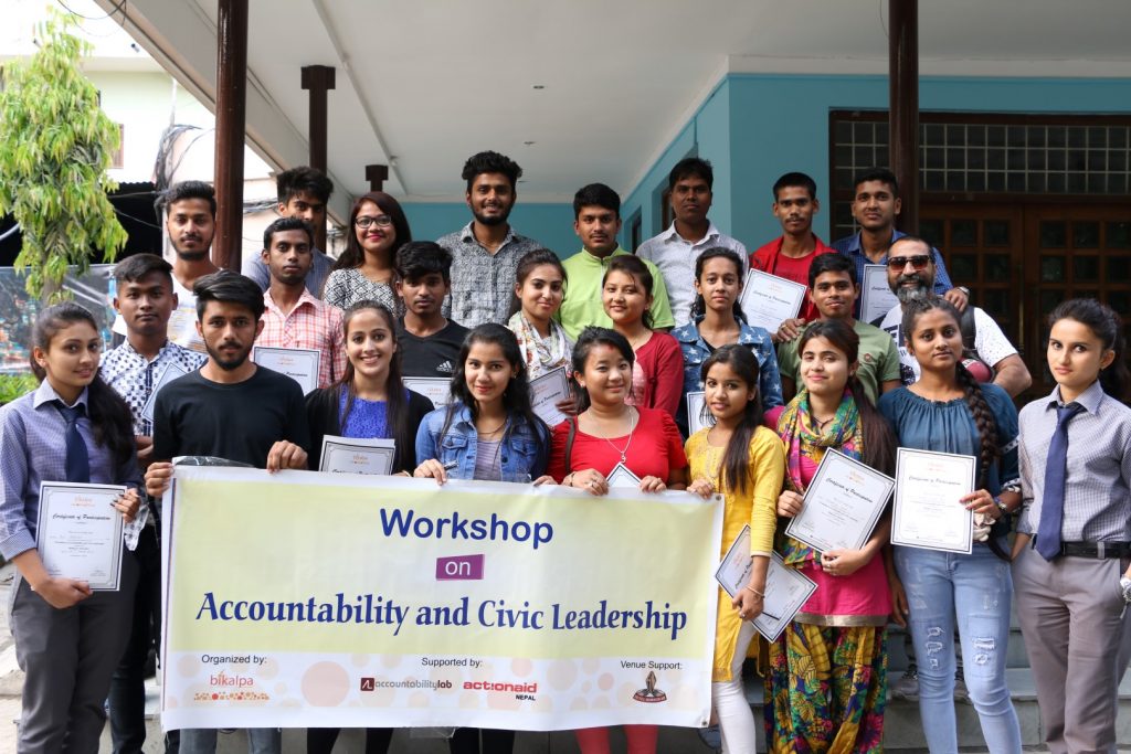 Bikalpa-an Alternative conducted the 16th “Workshop on Accountability and Civic Leadership” in collaboration with Accountability Lab & Action Aid Nepal, targeting the college students in Biratnagar. The objective of the program was to educate and