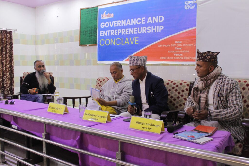On January 4th, 2025, Bikalpa, an Alternative, with the support of CIPE International, hosted the One-day ‘Governance and Entrepreneurship Conclave’ at Hotel Shree Krishna in Biratnagar. The event aimed to foster discussions and understand the