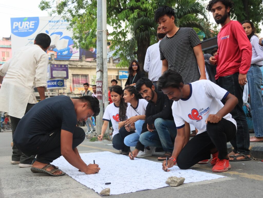 The campaign activity proceeded by appealing to the volunteers to join the Street Campaign on that day by creating a Facebook event. Different slogans were created to create awareness of the issue and increase the campaign’s effectiveness. The protest was also joined by our Bikalpa fellowship members and other participants holding up placards and banners adorned with slogans demanding an end to corruption and the resignation of corrupt officials.