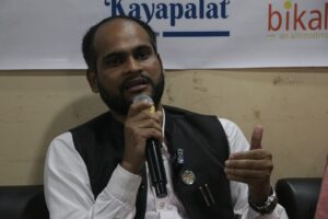 The session was facilitated by Mr. Diwakar Uprety, Founder and Executive Director of Kayapalat, outlining the context and relevance of the event to confront the challenges that threaten the sustainability and safety of the growing e-rickshaw. Uprety begin with welcoming all the participants in the event. Adding to this, Mr. Basanta Adhikari, Founder and Executive Director of Bikalpa an Alternative shared the objective of the event and the challenge faced by e-rickshaw drivers for not having driving license.