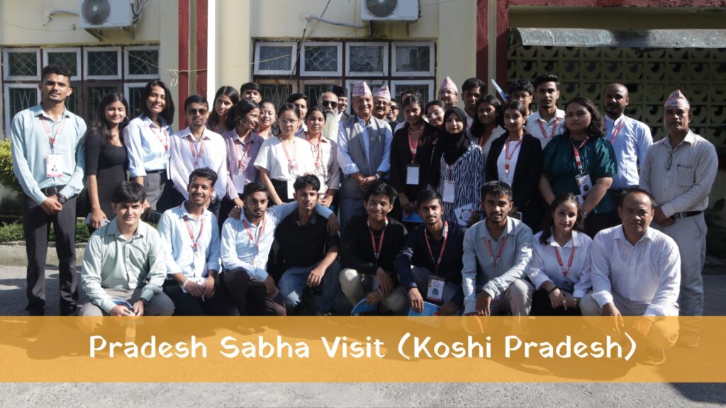 During the visit to the Koshi Province Assembly, participants gained a comprehensive understanding of the assembly’s rules of procedure, delving into its decision-making processes, and the roles and responsibilities of its members. The visit included a one-hour interactive session with Hon Mr. Amber Bista, the Speaker of the Koshi Province Assembly, along with key officials such as Gopal Prasad Parajuli (Provincial Assembly Secretary), Gautam Raj Amatya (Undersecretary, Administration/General Administration), and Dilli Prasad Acharya (Under Secretary, Law). Hon Mr.Amber Bista shared valuable insights into the workings of the assembly and his experiences as Speaker, while Mr. Parajuli emphasized the roles and responsibilities of the provincial assembly and the functions of its members, while discussions allowed participants to explore challenges and opportunities in assembly work and the significance of effective governance.