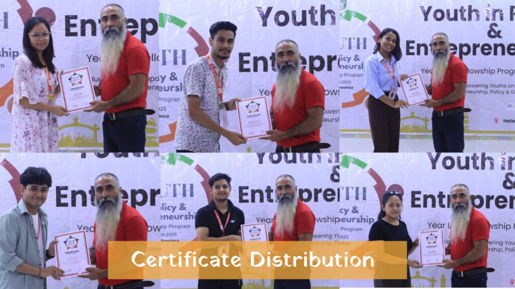 Mr. Basanta Adhikari took the opportunity to express his sincere congratulations to the fellows for their successful completion of the training phase. He provided an in-depth briefing on the next stages of the program in collaboration with Bikalpa, outlining the roles and responsibilities expected of the fellows as part of the YPE Koshi fellowship. To dispel any doubts or uncertainties, Mr. Adhikari proactively addressed questions regarding the nuances of the fellowship, ensuring that the fellows had a clear understanding of the program. He emphasized the importance of open communication, urging the fellows to engage with the Bikalpa teams as needed for a supportive fellowship experience. The session concluded with the presentation of certificates to the participants, in recognition of their dedication and hard work throughout the training.
