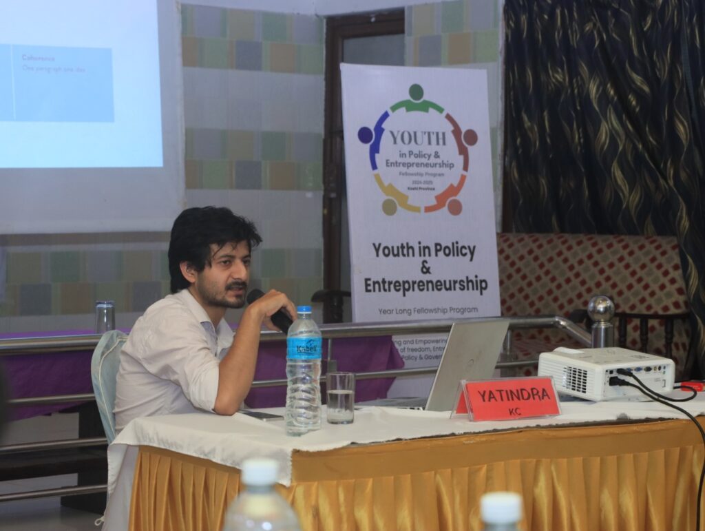 The “Youths in Policy and Entrepreneurship (YPE)” fellowship program is a comprehensive year-long initiative aimed at providing a platform for young individuals within the Koshi province to gain knowledge and actively participate in discussions about public policy, governance, and entrepreneurship. The program offers a unique opportunity for fellows to interact with policymakers, experts from various sectors, and members of the media, facilitating meaningful discourse on key policy and developmental issues. The second training camp for the Koshi Province YPE Fellowship 2023/24 was conducted successfully at the Hotel Shree Krishna in Biratnagar from August 15th to 17th, 2024.